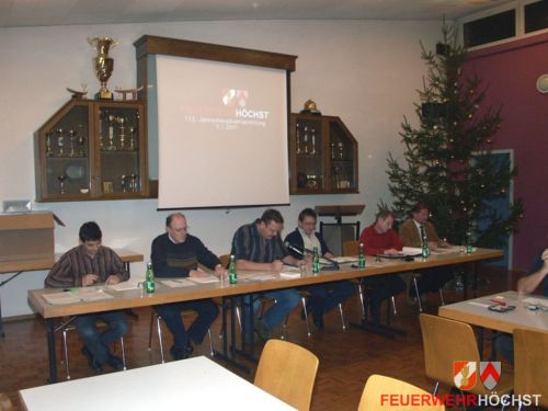 Kdt. Schneider Armin konnte anlässlich der 112. Jahreshauptversammlung Bürgermeister Werner Schneider, AFK Blum Werner, Ehrenkommandant Schneider Helmut, Altkommandant Gassner Helmut, die Ehrenmitglieder und beinahe die gesamte Höchster Wehr begrüßen.