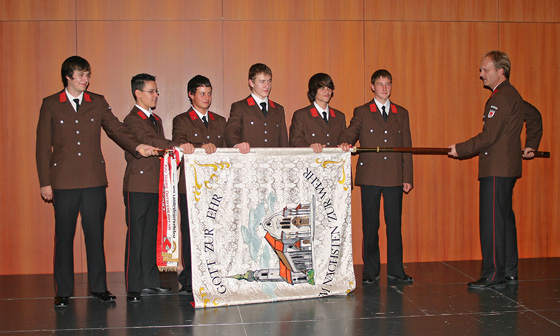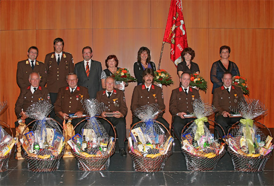 ![]() vlnr.: Kommandant und AFK Armin Schneider, Martin Nagel, Verbandsvorsitzender Stv. Andreas Hosp, Ehrenkommandant Helmut Gassner, Bürgermeister Werner Schneider, Hermo Wachter mit Gattin, Hubert Humpeler mit Gattin, Christian Dullnig mit Gattin, Wolfgang Dullnig mit Gattin