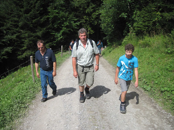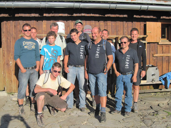 Kurz nach Mittag ging es mit den öffentlichen Verkehrsmitteln von Höchst aus nach Dornbirn und weiter ins Ebnit. Unter unserem Bergführer Thomas „Gerlinde“ Oberhammer* ging es von der Haltestelle Heumöser zu Fuß zur Alpe Ilgenwald wo eine kurze Rast bei einem guten Dornbirner Most eingelegt wurde bevor es weiter ging zur Höchster Alpe Sattel.