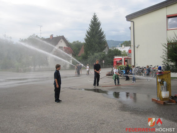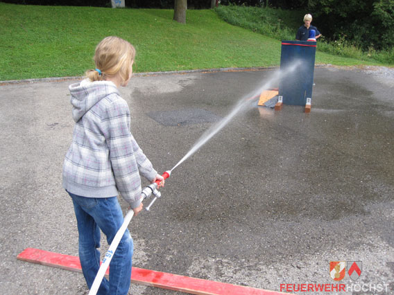 Hierbei lernten die Kinder alles kennen was mit der Feuerwehr zu tun hat, vom Feuerwehrauto über das organisatorische bis hin zum Löschangriff in einem verrauchten Raum. Zum Abschluss gab es ein Zielspritzen.