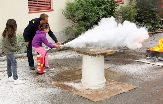 Beeindruckt waren sie aber besonders von der praktischen Vorführung der Tatsache, dass sich brennendes Benzin mit Wasser nicht löschen lässt. Da können sich die Burschen an der Handpumpe noch so anstrengen – das Feuer lodert weiter. Aber ein einziger Sprühstoß aus dem Feuerlöscher reicht bereits aus, die Flammen zu löschen.