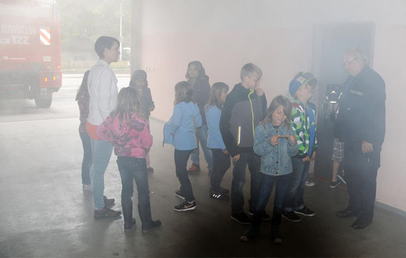 Für Abschnittskommandant Armin Schneider und weitere Mitglieder der Feuerwehr ist aber auch wichtig, den Schülern wichtige Tipps für das Verhalten im Brandfall zu geben. „Wenn ihr die Nummer 122 wählt, weil es brennt, dann reicht es eben nicht, nur ins Telefon zu rufen: ,Bei uns brennt’s, kommt schnell!’ und dann aufzulegen. Wichtig ist, dass ihr genau angebt, wer ihr seid, wo es brennt und vielleicht auch, was brennt.” Das erläuterte Armin Schneider den Kindern.