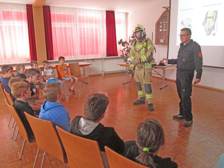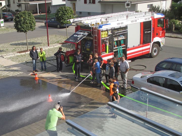 Hierbei lernten die Kinder alles was mit der Feuerwehr zu tun hat kennen. Vom Feuerwehrauto über das organisatorische bis hin zum Löschangriff in einem verrauchten Raum. Nach einer Rundfahrt mit den Feuerwehrautos gab es einen kleinen Bewerb und schließlich wurden alle mit frisch gegrilltem verwöhnt.