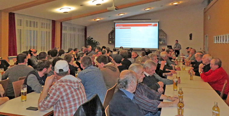 Zum Gedenken an unser im Berichtsjahr verstorbenes Ehrenmitglied Hans Hörfarter erhob sich die Versammlung. Pascal Hilbe gab in seinem Bericht einen Überblick über die Aktivitäten unserer Wehr. Diese zählt derzeit 74 Aktive Wehrmänner, 21 Ehrenmitglieder sowie ganz erfreulich 11 Jugendfeuerwehrmitglieder. 5 Kameraden wurden neu in den Aktivstand übernommen, leider waren auch 4 Austritte zu verzeichnen. Es standen Beförderungen an, und zwar wurden die Wehrmänner Sascha Weber, Julian Kresser und Lukas Ritsch zu Oberfeuerwehrmännern ernannt, Ronny Müller zum Hauptfeuerwehrmann.