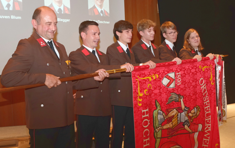 Kommandant Pascal Hilbe betonte bei seiner Begrüßung die Wichtigkeit des Abends, an dem neue Kameraden offiziell in die Feuerwehr aufgenommen wurden. Er lobte die Bereitschaft der jungen Mitglieder, ihre Freizeit für die Sicherheit der Mitbürger zu opfern und sich ehrenamtlich für das Wohl anderer einzusetzen. Danach lud er die neuen Mitglieder Alina Oberhammer, Finn Oberhammer, Rouven Blum, Lukas Biegger und Stefan Taschner auf die Bühne.
