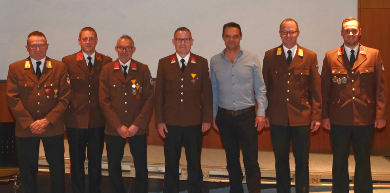 Die Ehrungen wurden vom Bezirksvertreter Gallus Beer im Namen des Landesfeuerwehrverbandes durchgeführt. Bürgermeister Stefan Übelhör überbrachte herzliche Grüße.