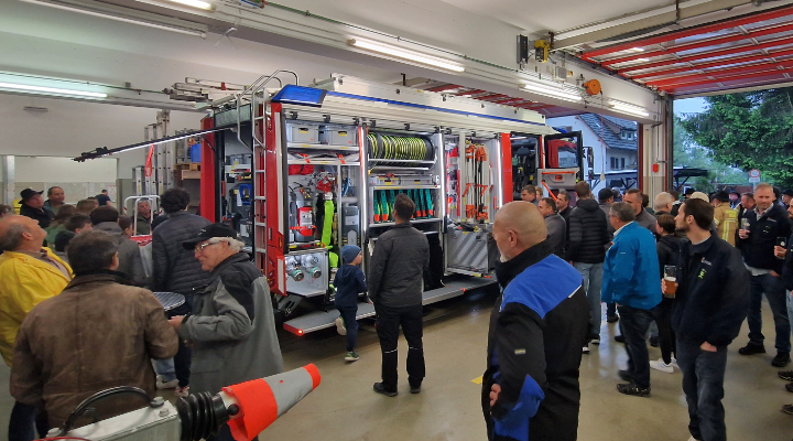 So konnte unser neues Tanklöschfahrzeug am Dienstagabend von zahlreichen Mitgliedern, deren Familien und Mitgliedern der Nachbarwehren, sowie der Gemeindevertretung, im Feuerwehrhaus empfangen werden.