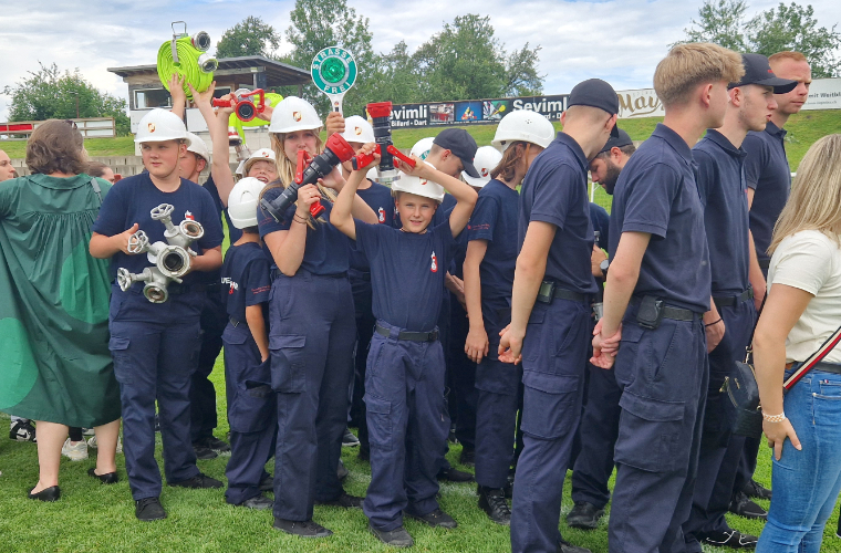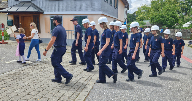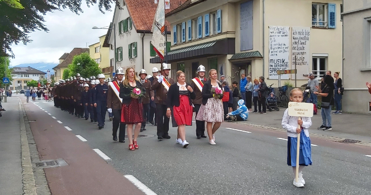 Der Sonntag krönte das Jubiläumswochenende mit einem großen Festumzug durch Höchst. Die gesamte Feuerwehr nahm geschlossen daran teil, unterstützt von der Feuerwehr Fußach, die dankenswerterweise den Absperrdienst übernahm. So konnten wir uns vollständig auf den Umzug konzentrieren und gemeinsam mit den anderen Teilnehmern einen beeindruckenden Umzug bieten.