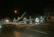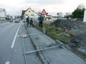 Bauzaun liegt nach Sturm auf Straße.