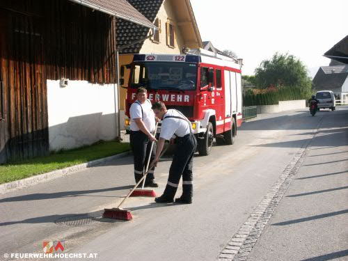 | Donnerstag Nachtmittag beschäftigte uns eine große Ölspur in Höchst. Ein unbekanntes Fahrzeug verlor auf mehreren Gemeindestraßen (Lettenstraße, Seestraße) und der Landstraße (L19) eine größere Menge an Öl. Da es sich um ca. 1,5 km verschmutzte Straße handelte unterstützten wir den Bauhof Höchst bei der Ölbindung. Ebenfalls vor Ort war das Landesstraßenbauamt, welches die Reinigung der L19 übernahm.