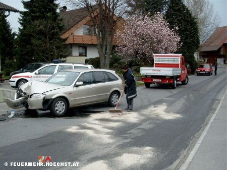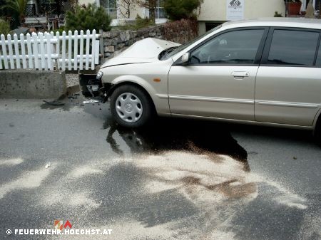 | Eine aus Richtung Fußach kommende 20-jährige, in Lustenau wohnhafte Deutsche, kam in der Rheinstraße von der Fahrbahn ab und kollidierte mit einer Gartenmauer. Durch den Aufprall platze die Ölwanne, wodurch Öl auf die Fahrbahn geflossen ist. Die Lenkerin wurde leicht verletzt und von der Rettung ins Krankenhaus transportiert. Unfallursache war vermutlich ein Schwindelanfall der Lenkerin.