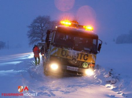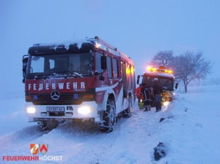 | Nach dem es in unserer Region die ganze Nacht ohne Unterbrechung geschneit hat, wurde die Feuerwehr Höchst gegen 5:30 Uhr zu mehreren Einsätzen gerufen. Insgesamt hatten wir fünf Einsätze, wobei vier Einsätze durch Bäume die der Schneelast nicht mehr standgehalten haben und über Straßen gelegen sind, verursacht wurden. Weiters mussten wir einen Autoabschleppwagen des ÖAMTC aus einer misslichen Lage befreien. Dieser sollte auf einer Riedstraße Richtung Gaißau einen PKW bergen welcher von der Straße abgekommen ist. Dies gelang ihm auch, doch durch die starken Schneeverwehungen konnte der LKW Lenker die Straße nicht mehr genau erkennen und rutschte infolge selber in einen Straßengraben.