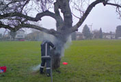 Rauchentwicklung in hohlem Baum