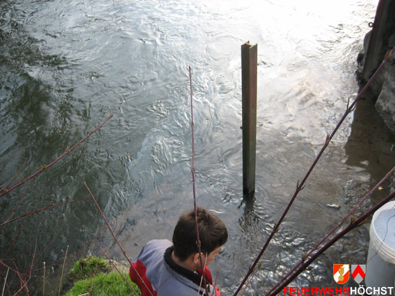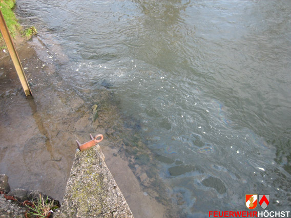 Um 16:40 Uhr wurde die Feuerwehr Höchst an den alten Rhein gerufen, da auf Höhe der Reitanlage ein Passant Öl im Wasser bemerkt hat.