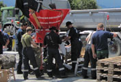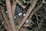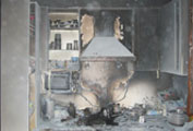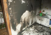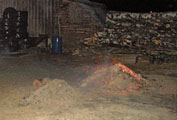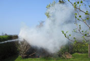 Funkenflug nach verbrennen von Ästen am Nachmittag