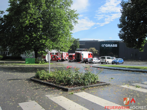 Aufgrund des starken Gewitters mit Hagel kam es zu Problemen mit dem Abfluss des Dachwassers, wodurch mehrere Produktionshallen überschwemmt wurden.