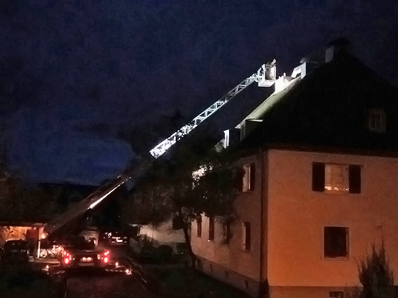 Heute wurden wir telefonisch zu einer losen Kaminabdeckung in der Brugger Straße gerufen. Danke der Unterstützung unserer Kameraden aus Hard, welche mit der Drehleiter die Abdeckung abmontierten, konnte die Gefahr schnell beseitigt werden.