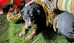 Erschöpfter Hund mit Leiter aus Pool gerettet