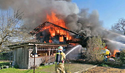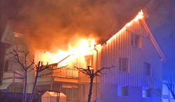 Balkonbrand, bei Eintreffen bereits Dachstuhlbrand