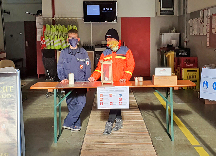 Das Abholen der Bevölkerung konnte leider auch nicht wie all die Jahre zuvor abgehalten werden, so konnte in unser Fahrzeughalle zwar das Licht abgeholt werden, auf das gemütliche Zusammensitzen musste leider verzichtet werden.