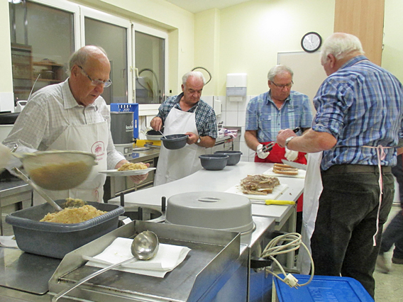 Die ausgezeichnet zubereitete Schlachtpartie mundete allen Teilnehmern. Auch das obligate „Verrupferle“ hatte den richtigen Platz gefunden um die satten Mägen zu beruhigen.