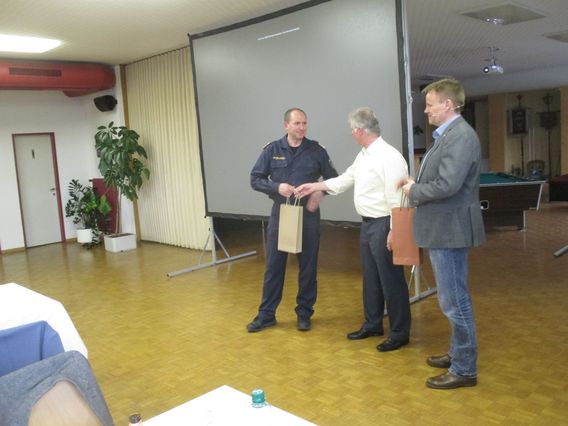 Die gespannt lauschenden Zuhörer bedankten sich im Anschluss an das Referat bei beiden Akteuren mit einem kräftigen Applaus, den unser Obmann mit der Übergabe eines Präsents an sie bekräftigte.
