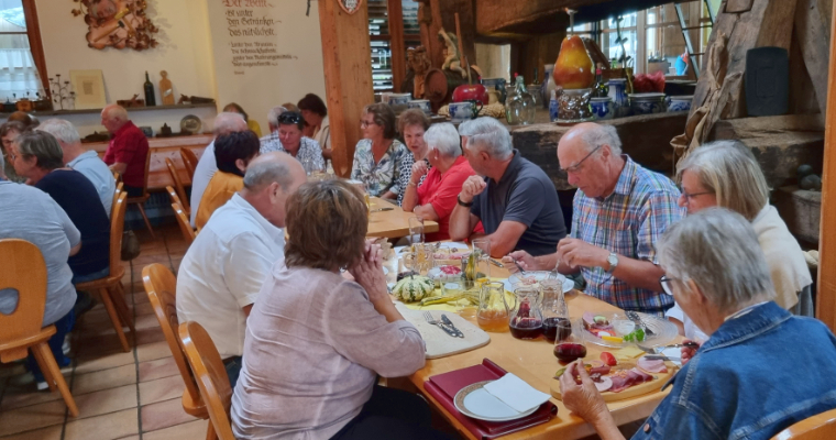 Nach der Verkostung sammelten sich die Teilnehmer zur Weiterfahrt nach Nonnenhorn zum Gutsausschank „Zum Winzer“ Peter Hornstein. Die vielfältige Vesper, begleitet vorwiegend mit gutem Wein beendete den vom Wetter begünstigten Ausflugstag. Wilfried fuhr uns wieder alle gesund und gut gelaunt nach Hause zu den Ausstiegsstellen.
