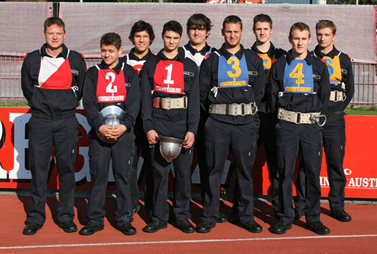 Feuerwehrjugend: Philipp Hörfarter, Simon Forster, Johannes Pauritsch, Marcel Groß, Jan Schneider, Marco Bösch, Lukas Ritsch, Manuel Siembicka, Niklas Steurer, Michael Frick und Jugendleiter Jörg Oberhammer