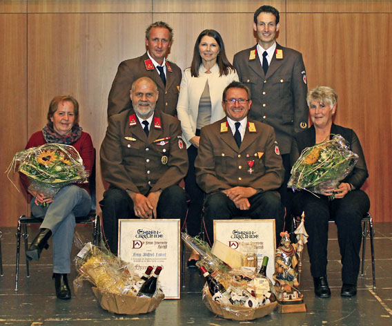 Bezirksfeuerwehrkommandant Herbert Österle nahm die Ehrungen seitens des Landesfeuerwehrverbandes vor und unsere Vizebürgermeisterin überbrachte die Glückwünsche der Gemeinde und dankte den Geehrten für ihren geleisteten Dienst und unsere stetige Einsatzbereitschaft.