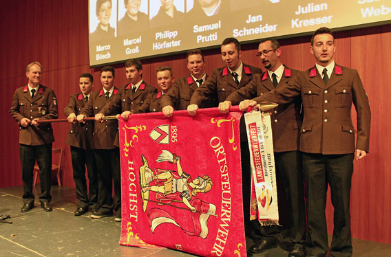 Ebenfalls werden an diesem Abend auch traditionell die neuen Mitglieder in unseren Reihen angelobt. So konnten in diesem Jahr gleich Acht Kameraden mit der Lobesformel ihre Zugehörigkeit zur Feuerwehr Höchst bestätigen. Dies sind Marco Bösch, Marcel Groß, Philipp Hörfarter, Samuel Prutti und Jan Schneider die aus der Feuerwehrjugend in den Aktivstand übergetreten sind und Julian Kresser, Sascha Weber und Alexander Brunner die neu eingetreten sind.